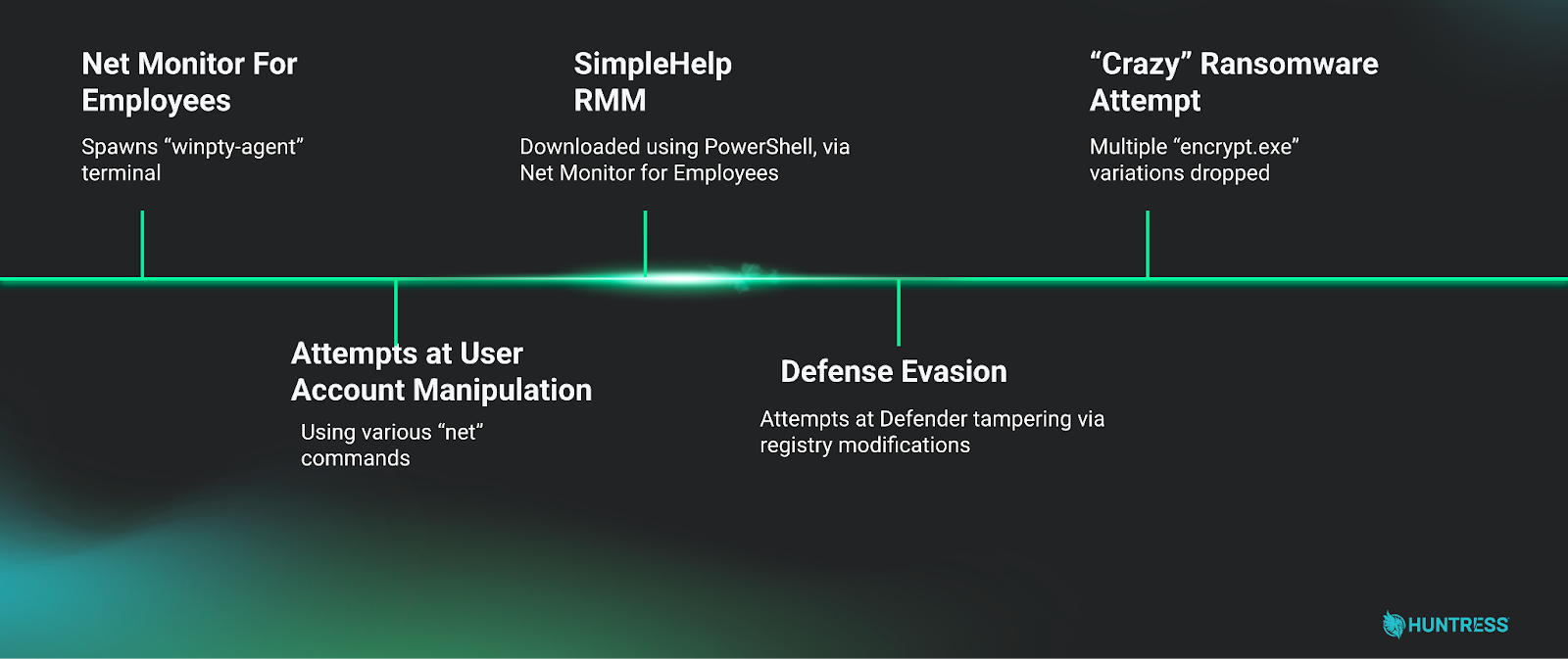 In this case, a relatively complete picture of the intrusion was able to be built from limited telemetry, despite incomplete Huntress EDR agent coverage for the victim network.