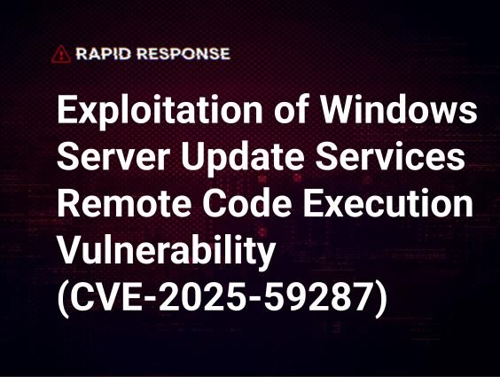 Starting around 2025-10-23 23:34 UTC, Huntress observed threat actors targeting WSUS instances publicly exposed on their default ports (8530/TCP and 8531/TCP) to exploit a deserialization vulnerability via the AuthorizationCookie (CVE-2025-59287).