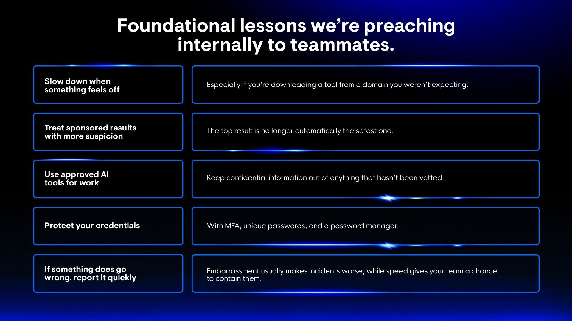 So why are we telling this story? Because it’s moments like this where your business’ resilience gets put to the test. Because transparency is more useful than sanitized perfection. A prominent security engineer clicked the wrong link. It happens. What matters is what an organization does in the seconds, minutes, and hours after.