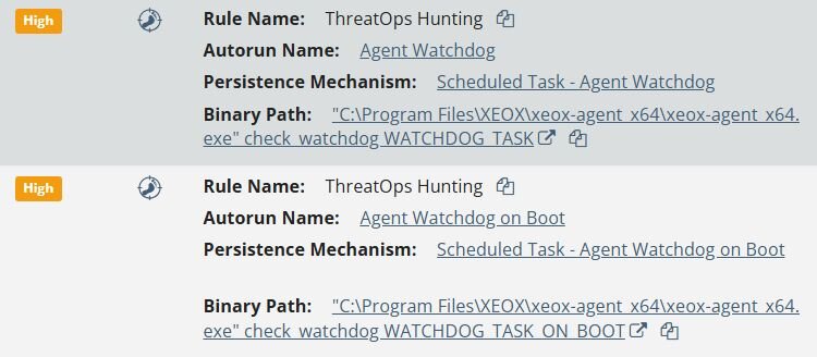 Figure 16: Huntress detections for XEOX RMM agent persistence via scheduled tasks