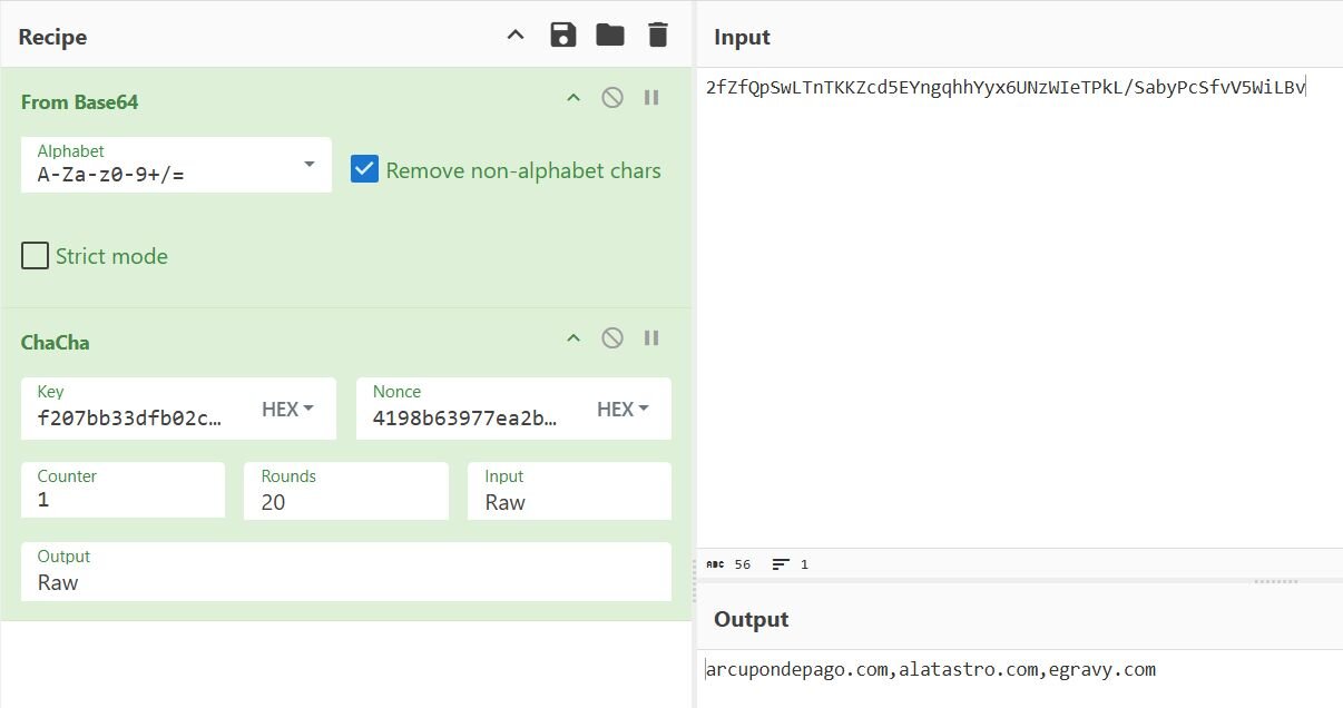 Figure 14: Decrypted C2s (Source: CyberChef)