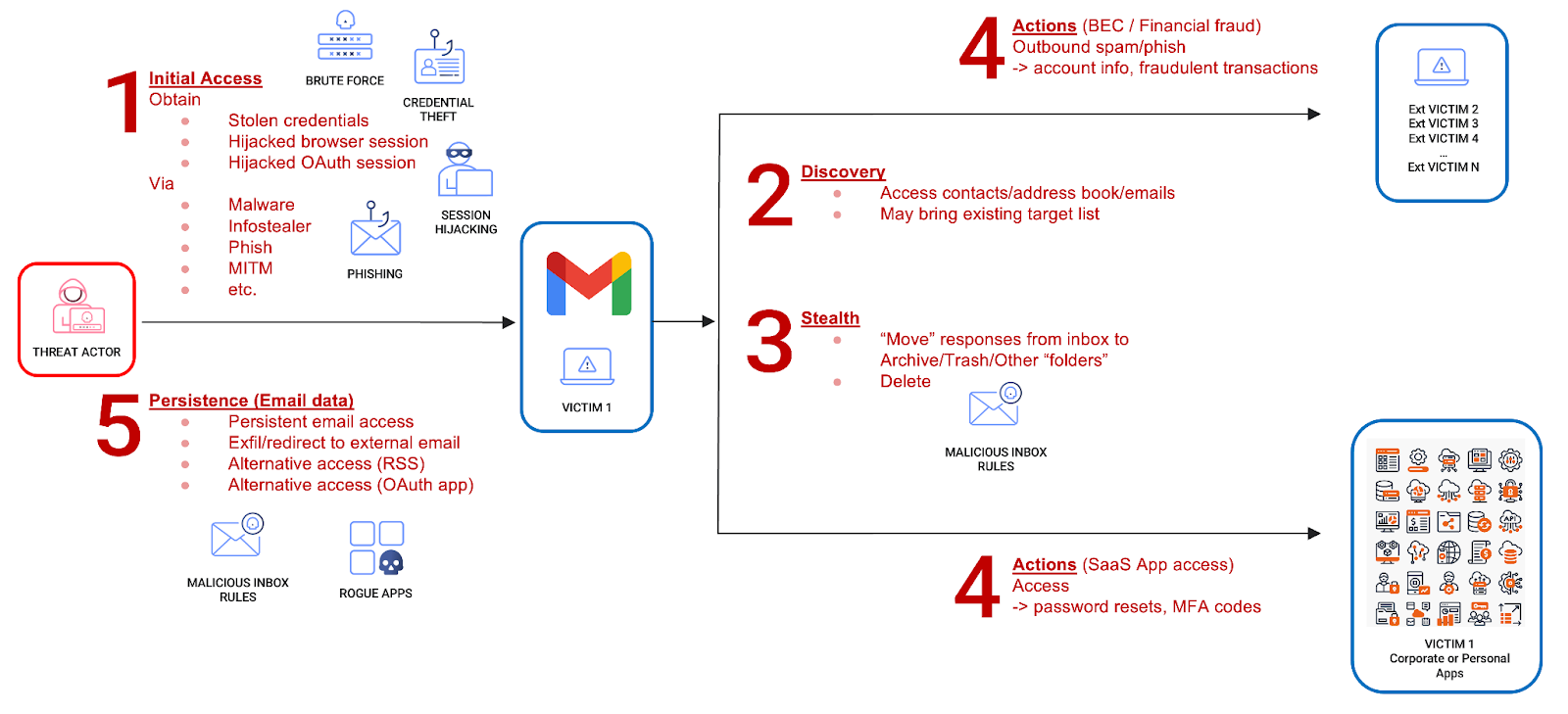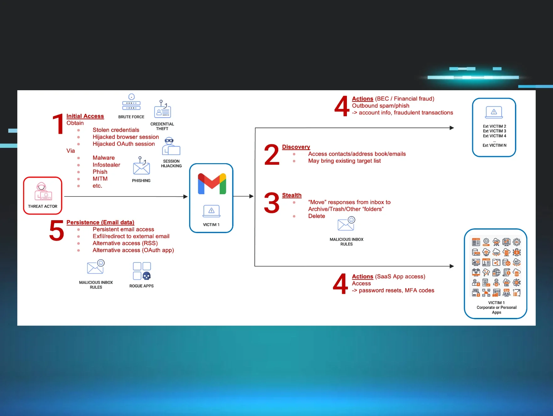 Actions – Fraud, lateral SaaS compromise, phishing expansion
