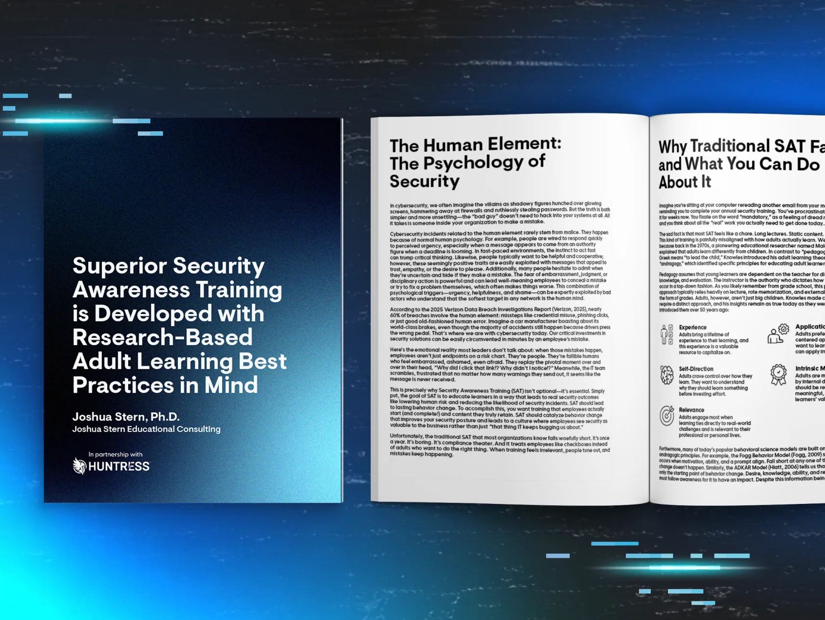 With his extensive expertise in the adult-learning world, we asked him to conduct an in-depth review of Huntress Managed SAT to get a third-party expert’s view on how Managed SAT stacks up against the principles of andragogy to effectively shift employee behaviors to build a culture of security awareness.