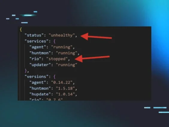This streamlined, powerful tool delivers real-time visibility into your EDR agent’s status. Running directly on the endpoint, this API allows you to ping your Huntress agent to confirm it’s active, retrieve version details for critical components, and assess its overall health with a single query.