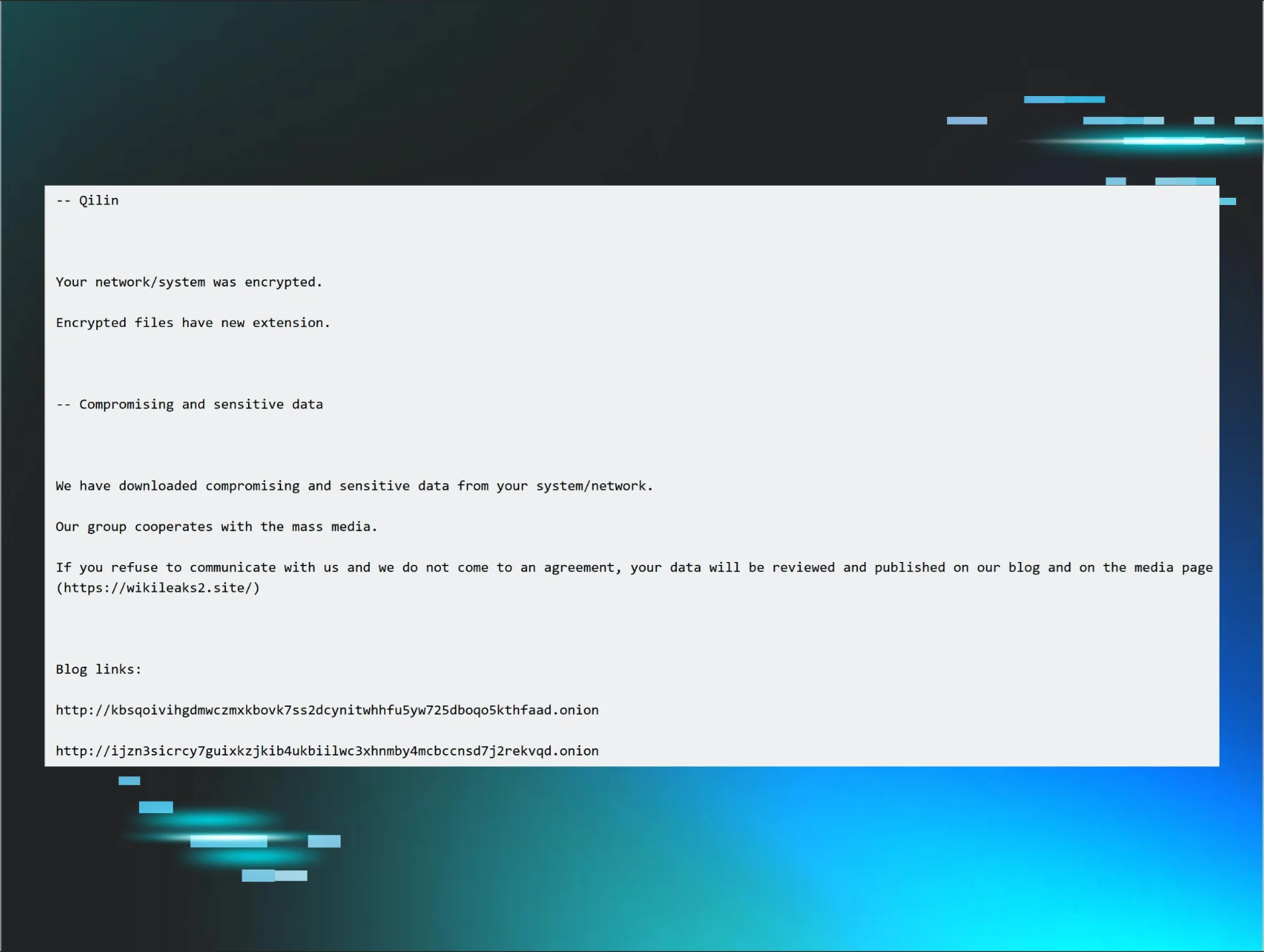 Figure 4: Qilin ransom note excerpt