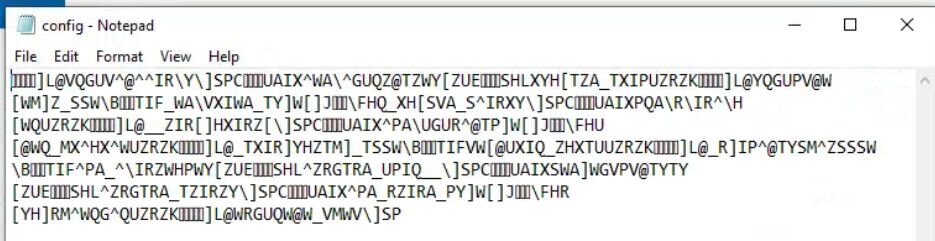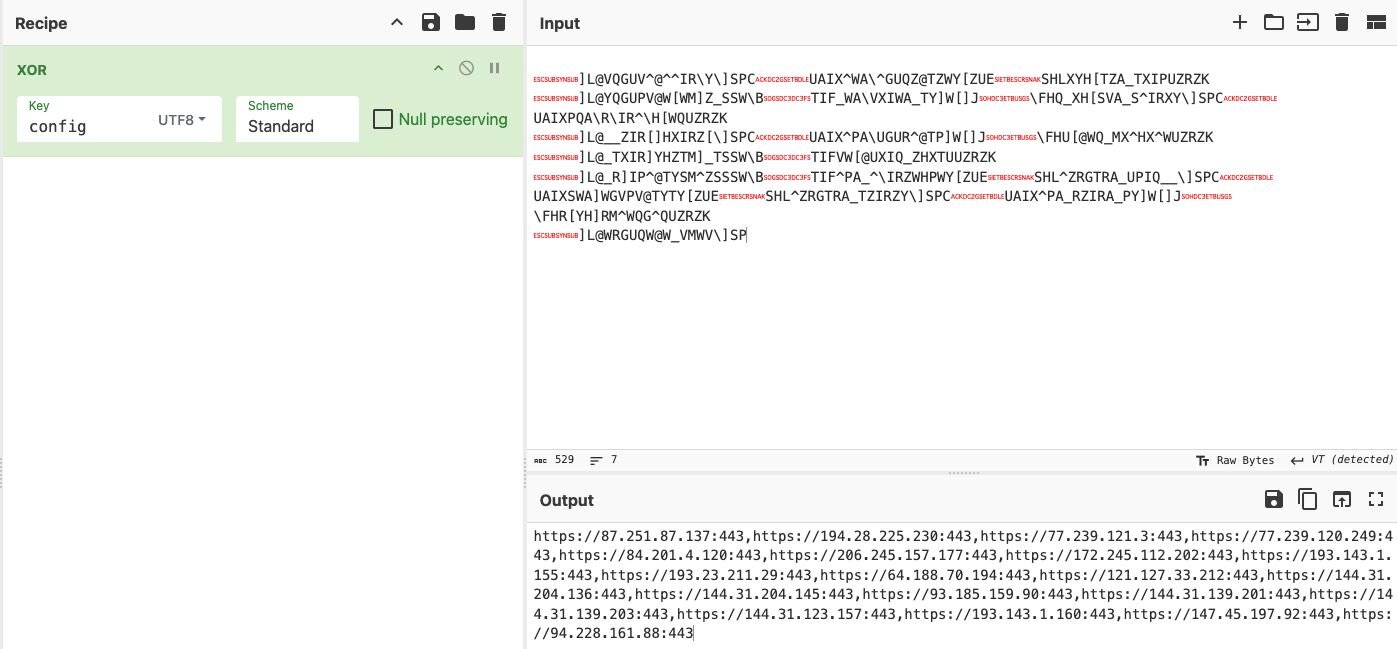 The encrypted configuration is trivially decrypted using the XOR key config.