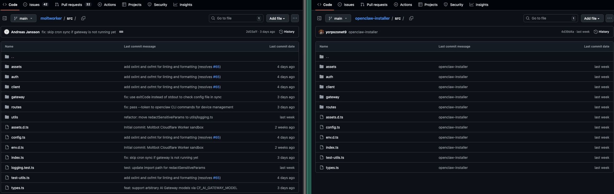 Figure 9: moltworker code comparison to OpenClaw-Installer source