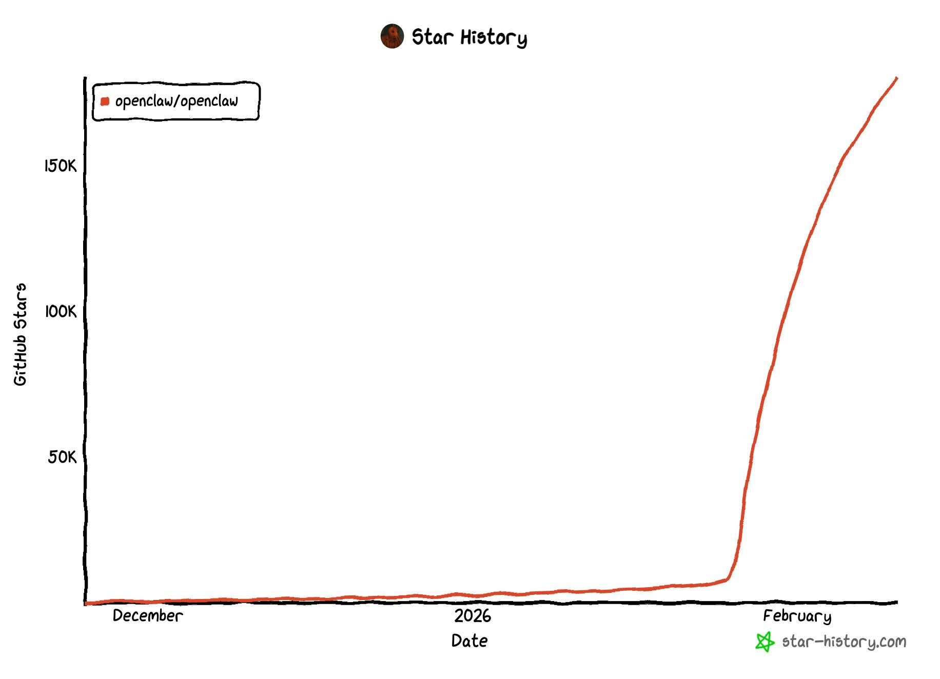 Figure 1: OpenClaw star history, from original GitHub repository courtesy of star-history.com