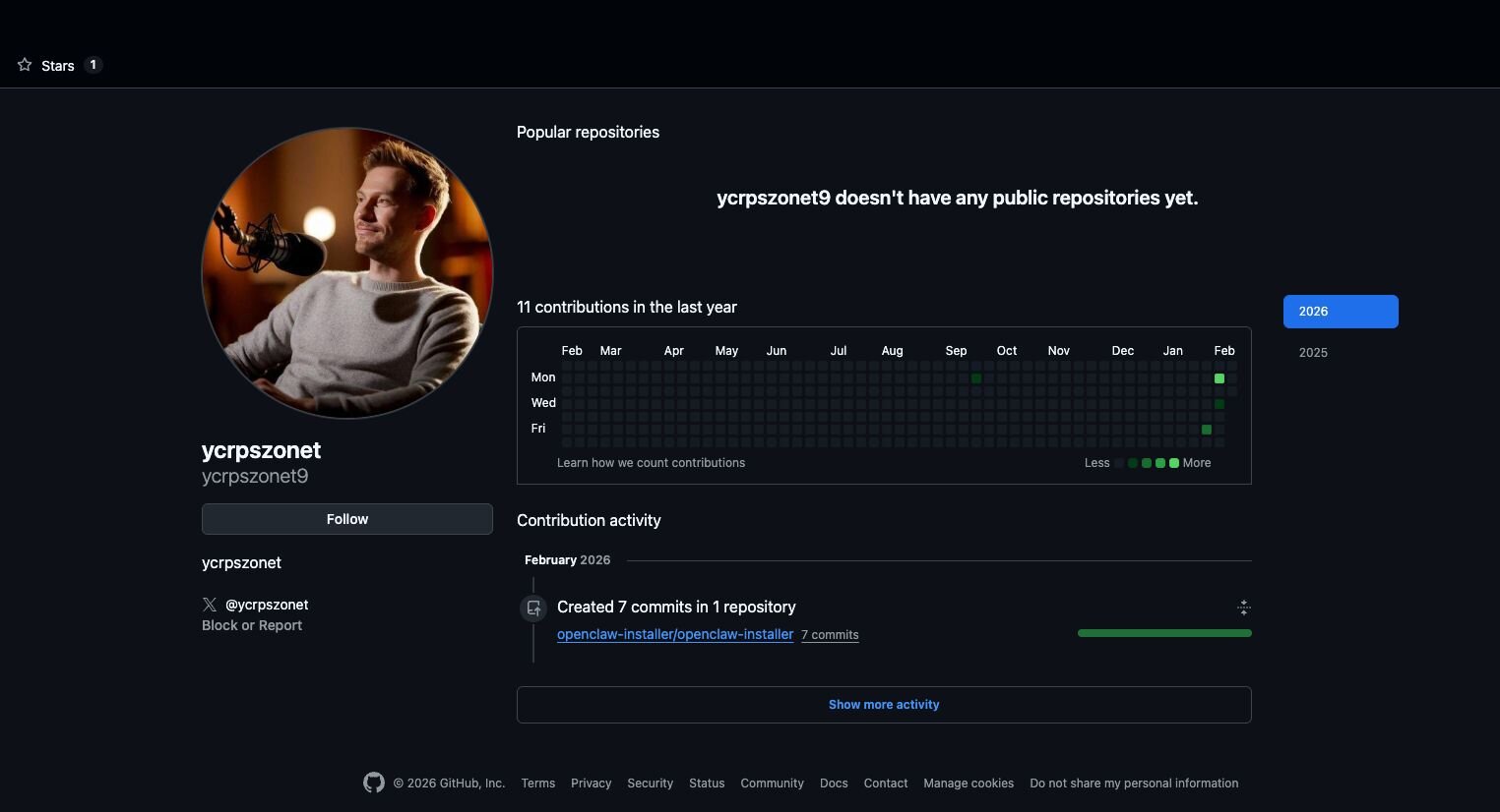 Figure 8: Largely inactive GitHub account tied to malicious OpenClaw repository