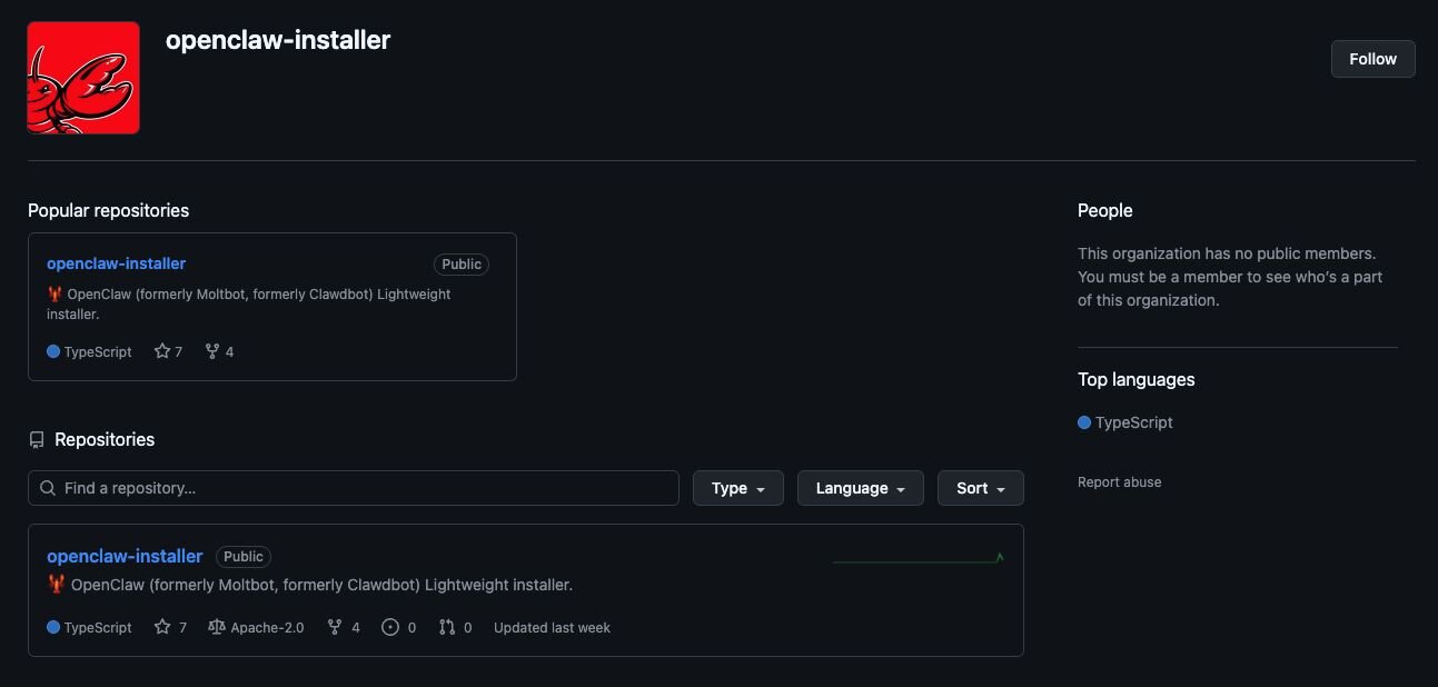Figure 5: Openclaw installer GitHub organisation