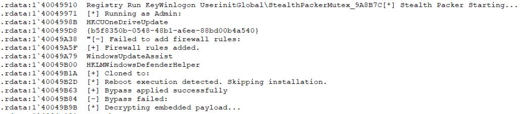 Stealth Packer is a new packer that injects malware into memory, adds firewall rules, creates hidden ghost scheduled tasks, and performs potential AntiVM checks for mouse movement before running decrypted payloads.
