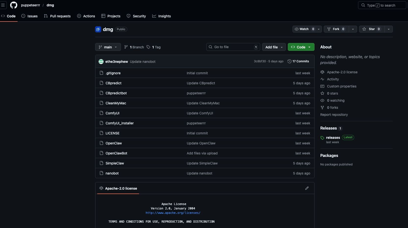 Figure 18: Malware hosted on GitHub repository dmg under puppeteerrr organisation