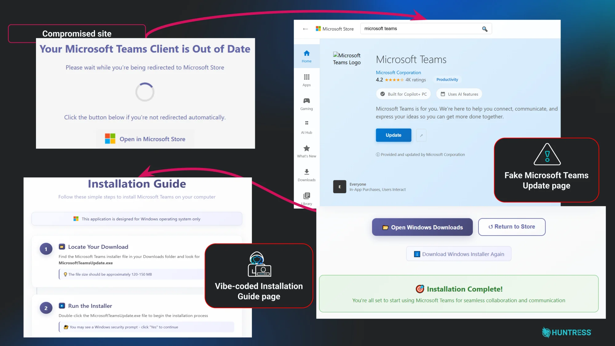 In a terrible tools‑turned‑against‑you moment, a user received a phishing email that sent them to what looked like a pixel‑perfect Microsoft Store page with star ratings, polished branding, and an emoji‑filled install guide. The site was actually hosted on a compromised domain, and the “update” they downloaded, MicrosoftTeamsUpdate.exe, was digitally signed by Datto, LLC.