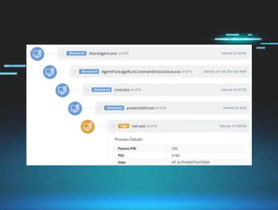 Figure 1: This process tree shows the threat actor executed net.exe via the Atera RMM
