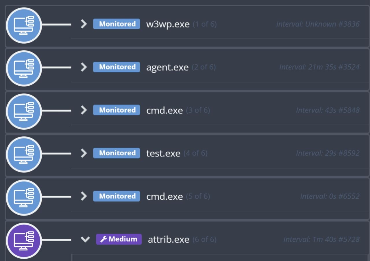 Following the PowerShell commands, attrib.exe was launched via the process tree illustrated in Figure 6.