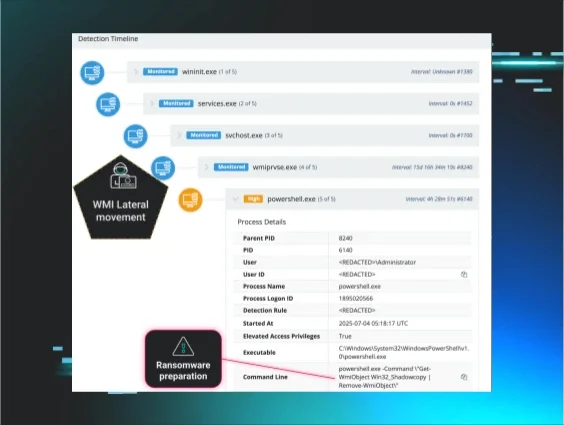 Figure 1: Shadow volumes deleted via WMI lateral movement