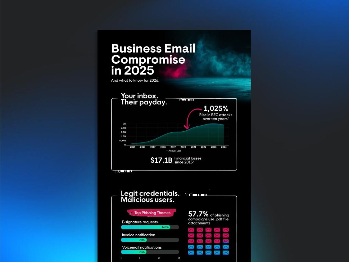 Dive deeper into identity threats like BEC (and more) in the Huntress 2026 Cyber Threat Report. Short on time? Use this infographic for the quick hits and key takeaways to turn up the volume on identity threats.