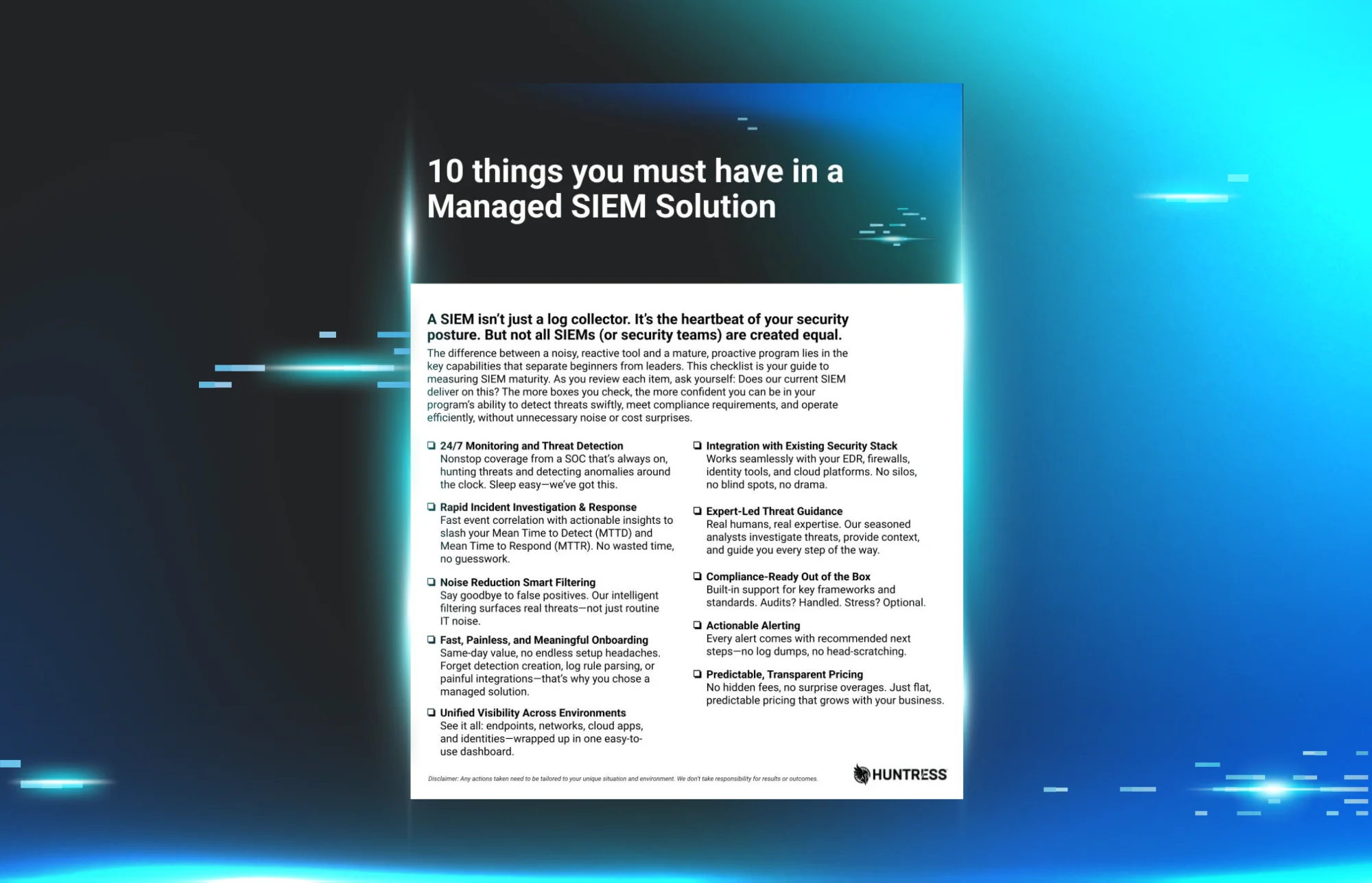 Book a personalized demo to look at Huntress under the hood, explore the dashboard, and ask questions to our experts.
